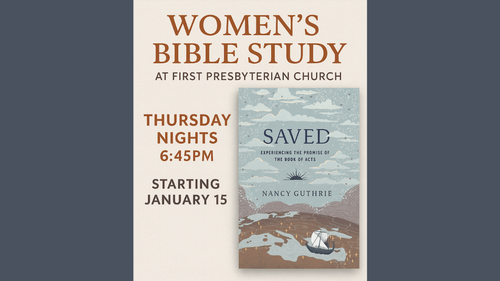 Ladies, join us for Women's Bible Study on Thursdays at 6:45PM starting January 15th at FPC! We are beginning a brand new study through the book of Acts using the study "Saved: Experiencing the Promise of the Book of Acts," by Nancy Guthrie. Study books are $8. For more information, contact Kristin Milks at milksfam10@gmail.com.